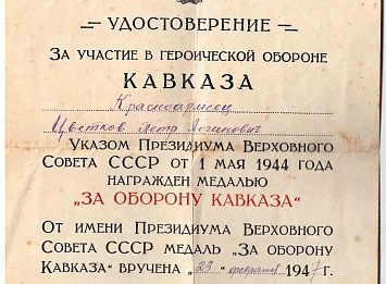 Краткая биография: Петр Цветков был призван в Красную Армию в 1940 году, служил помощником машиниста паровоза. С декабря 1942 по май 1945 года участвовал в Великой Отечественной войне, в том числе в боях за Кавказ, освобождении Новороссийска, Украины и Румынии. Награжден медалями «За оборону Кавказа» и «За победу над Германией».