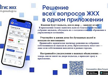 «Госуслуги.Дом» бесплатное мобильное приложение для решения жилищно-коммунальных вопросов, работающее на основе данных, размещенных в ГИС ЖКХ, что позволяет собственникам решать все вопросы ЖКХ в режиме «одного окна». Одна из самых востребованных функций мобильного Приложения – бескомиссионная оплата жилищно-коммунальных услуг посредством быстрых платежей (СБП). Кроме того, собственники помещений в многоквартирном доме могут передавать показания приборов учета, просматривать статистику расхода коммунальных услуг, контролировать график проведения капитального ремонта, видеть результаты прошедших собраний собственников, организовывать чат с жильцами дома и т.д. Для авторизации в Приложении достаточно использовать подтвержденную учетную запись на портале Госуслуг.