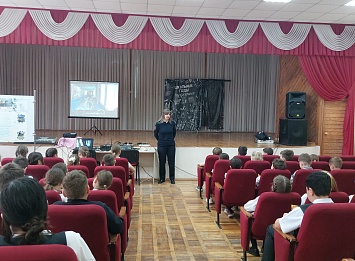Открыла урок представитель Госавтоинспекции, которая в преддверии весенних каникул напомнила присутствующим Правила дорожного движения и светофорного регулирования. Екатерина Викторовна призвала ребят использовать в вечернее время светоотражающие элементы на одежде или специальные световые маячки, чтоб каждый «светлячок» был замечен на дороге водителем. После о любви к животным, их уходе и о профессии кинолога школьникам рассказала представитель кинологической службы Анастасия Ващенко. Знакомство началось с просмотра фильма, в котором ребята узнали о том, как «хвостатые» в МВД несут службу совместно с человеком, как о них заботятся сотрудники и кто развивает в них «особый» нюх. Открывая рассказ Анастасия Сергеевна поблагодарила ребят, родителей и педагогов за подготовленную выставку, за развитие таких качеств как забота, и ответственность. После с ребятами провели правовой диалог, напомнив правила поведения дома, в интернете и в общественных местах. Школьникам были предложены различные виртуальные происшествия, которые они должны были «распутать» и дать правильный итог. Отдельной темой Анастасия Сергеевна выделила алгоритм действий при обнаружении подозрительного предмета, оставленного вне дома. Представитель МВД объяснила, как необходимо действовать в данной ситуации.