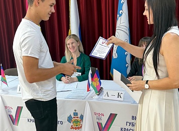 Молодёжь Белореченского района активно участвует в процессе голосования. Впервые голосующим на избирательном участке вручается уникальное свидетельство о том, что по достижении возраста совершеннолетия они приняли участие в главных выборах Кубани - выборах Губернатора Краснодарского края.