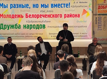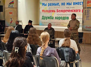 На базе Управления по делам молодежи МО Белореченский район, прошла информационная встреча, посвящённая противодействию ненависти и вражде в молодежной среде. В рамках акции «Терроризм-война в мирное время» выступающими стали правоохранители, священнослужитель Свято- Покровского храма, отец Димитрий, заместитель председателя Белореченского отделения союза казачьей молодёжи Кубани Владимир Резниченко, ветеран боевых действий Республики Афганистан Константин Попов, участники СВО Артем Гришин и Александр Рогов.
