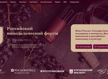 Департамент потребительской сферы и регулирования рынка алкоголя Краснодарского края информирует о проведении 4-го Российского винодельческого форума, который состоится 12-13 ноября 2025 г. по адресу: г. Москва, ул. Кутузовский проспект, д. 2/1, стр. 1, на территории отеля «Рэдиссон Коллекшен».