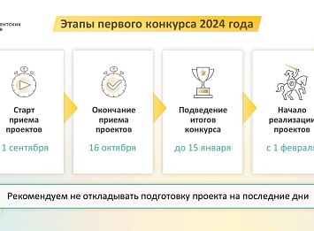 Итоги конкурса будут подведены в январе следующего года. Приступить к реализации поддержанных проектов победители конкурса смогут с 1 февраля следующего года.
