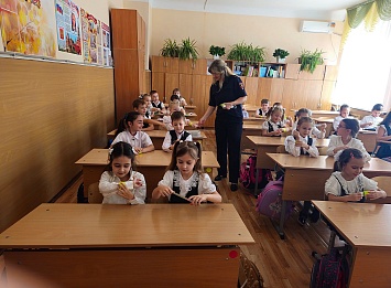 В 9 школе Белореченского района инспекторы дорожной полиции совместно с педагогами провели с первоклассниками акцию "Светоотражатели – детям!".