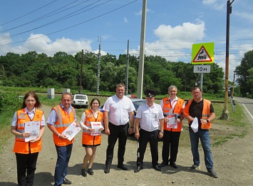 Все участники акции получили памятки с выдержками из Правил дорожного движения о соблюдении правил проезда железнодорожных переездов с пожеланиями безопасного пути от Российской железной дороги и Госавтоинспекции.